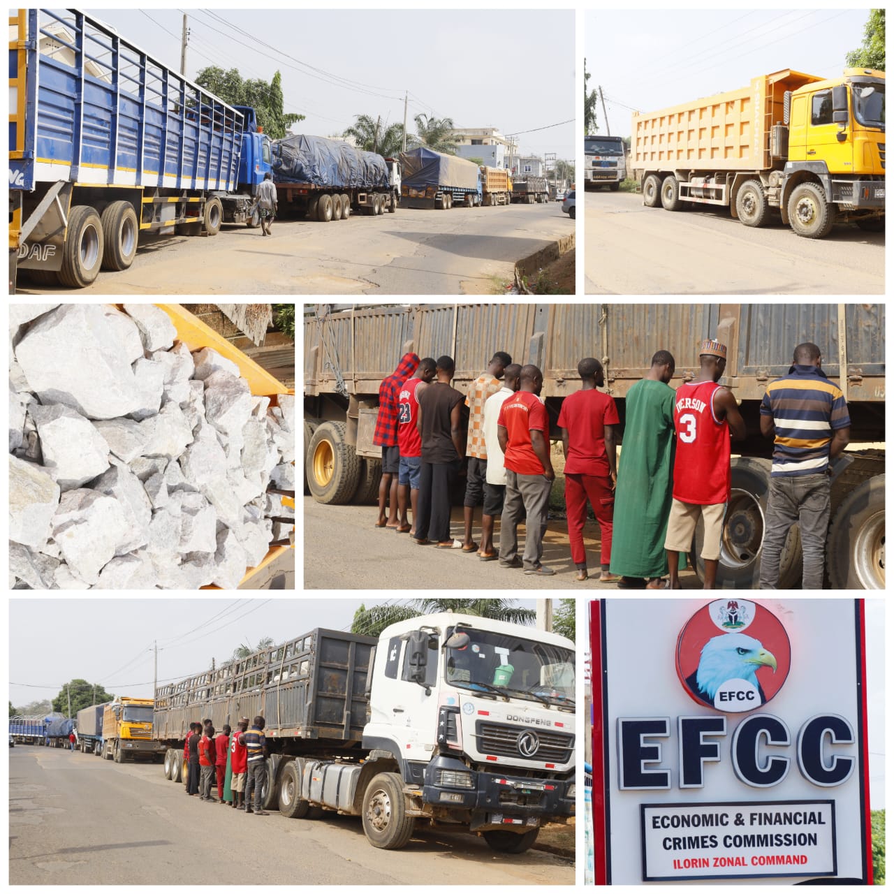 The Economic and Financial Crimes Commission (EFCC) has intensified its clampdown on illegal mining activities with the arrest of 10 suspects and the seizure of several trucks conveying solid minerals along the Ilorin–Ogbomosho corridor in Kwara State.
