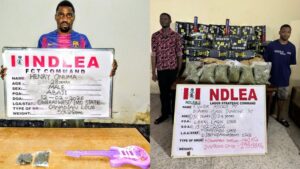 “In Abuja, NDLEA operatives on Thursday, 12th February intercepted a waybill package sent from Enugu containing children’s toy guitar.