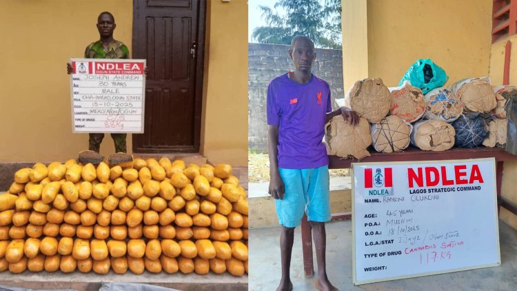 “One of them, a cargo agent, Boladale Riliwan was arrested on 7th October, 2025, following the discovery of 15 parcels of skunk, a strain of cannabis, concealed in 10 pieces of giant rechargeable electrical bulbs he presented in a carton for airfreight to Democratic Republic of Congo (DRC) at the export shed of the Lagos airport.