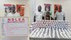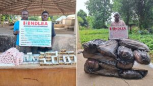 “While 150kg skunk was recovered during a raid operation at Lot camp, Ikun Akoko, Ondo State, two suspects: Bashir Mohammad, 50, and Samini Ahmed Tijjani, 35, were nabbed with 234.5kg of same substance at Yan aya , Saminaka in Lere LGA, Kaduna on Friday, 24th October just as another set of suspects: Isah Usman, 50, and Salvation Okoler, 18, were arrested with 8,600 pills of tramadol 225mg and rohypnol along Abuja/Kaduna highway.